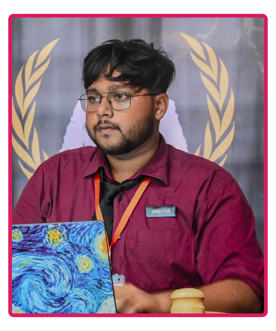 Nishant is a doctor by profession and a native of Bhubaneswar, Odisha. He has chaired numerous conferences in the Eastern and Southern circuits. With a longstanding passion for debating, parliamentary forums, and international law, he has cultivated deep expertise in both domestic and global affairs. Known as an Indian committee specialist, he also enjoys chairing General Assemblies and World Health Assemblies, using his knowledge to create enriching experiences for delegates across the country.
